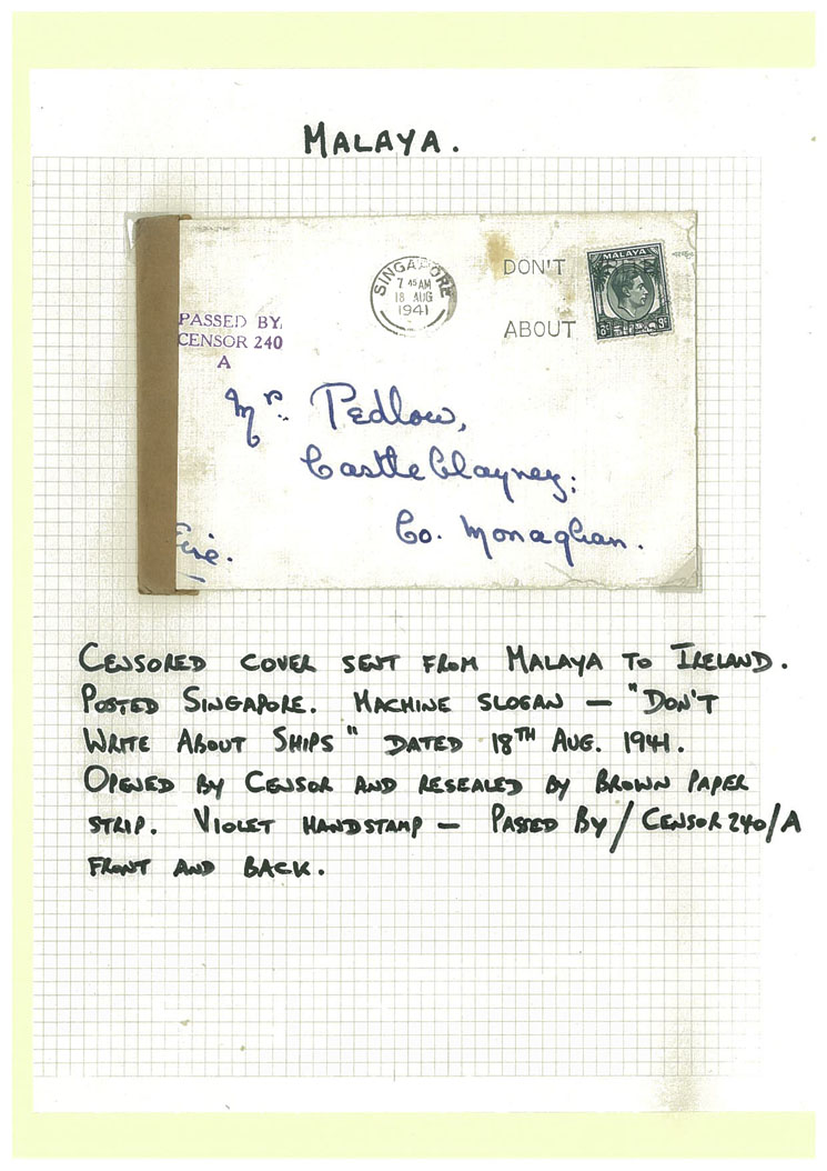 Censor Covers, A display by NIPS member Norman Scott to the Society in March 2010.A display showing the different censor marks and Field Post Office Marks on cards and covers over the last 110 years.To see the full display click on the picture below for the relevant display. Once in that display, to see a larger image, click on the relevant page and a larger image will open on a new page. Some browsers allow this to be enlarged further by clicking on the page. Once viewed, click the back arrow on your browser to return to this page.