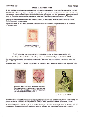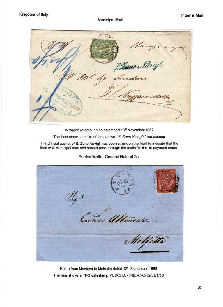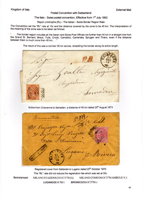 Italian Postal Rates paid by the De La Rue Series, a display by David Sweeney - An overview of the use of the Italian postage stamps produced in the designs created by the De La Rue Company of London from their introduction in December 1863 to their use in meeting the General Postal Union rates of 1875 to 1879.To see a larger image, click on the relevant page and a larger image will open on a new page. Some browsers allow this to be enlarged further by clicking on the page. Once viewed, click the back arrow on your browser to return to this page.