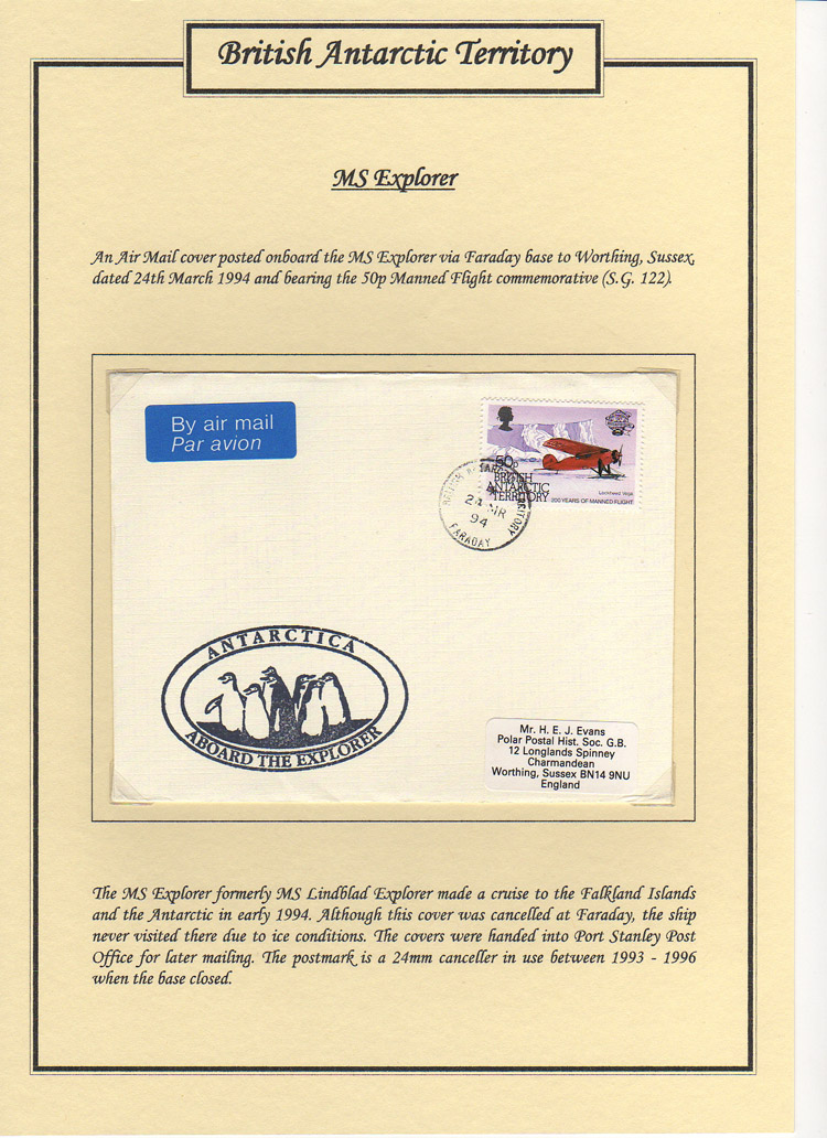 British Antarctic Territory, a display by Lagan Valley Philatelic Society member Ian Howell on the Antarctic Bases and their cachets.To see a larger image, click on the relevant page and a larger image will open on a new page. Some browsers allow this to be enlarged further by clicking on the page. Once viewed, click the back arrow on your browser to return to this page.