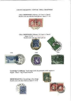 Kilkenny Postmarks, a collection by Selwood FitzpatrickThe display has been scanned to create a record of Part of Selwoods extensive postmark collection from Ireland. The images give an indication of the pages and is in low resolution scanned through the protective plastic sheets. In some scans there will be reflection, or some blurring of the image from the scanner.To see the full display click on the picture below for the relevant display. Once in that display, to see a larger image, click on the relevant page and a larger image will open on a new page. Some browsers allow this to be enlarged further by clicking on the page. Once viewed, click the back arrow on your browser to return to this page.