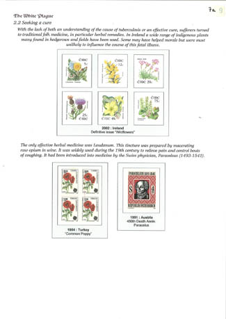 The White Plague - A Thematic Display by William Thompson. The display provides an overview of the history and research into tuberculosis and notes some of the people who died from the disease. The display was presented to the North of Ireland Philatelic Society in December 2010.To see a larger image, click on the relevant page and a larger image will open on a new page. Some browsers allow this to be enlarged further by clicking on the page. Once viewed, click the back arrow on your browser to return to this page.