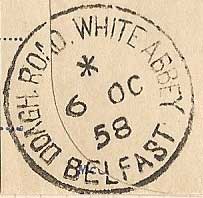The post office is listed as opened in 1959-64. However there is no listing for the Doagh Road, Whiteabbey Office. It has previously listed an english SRDS.