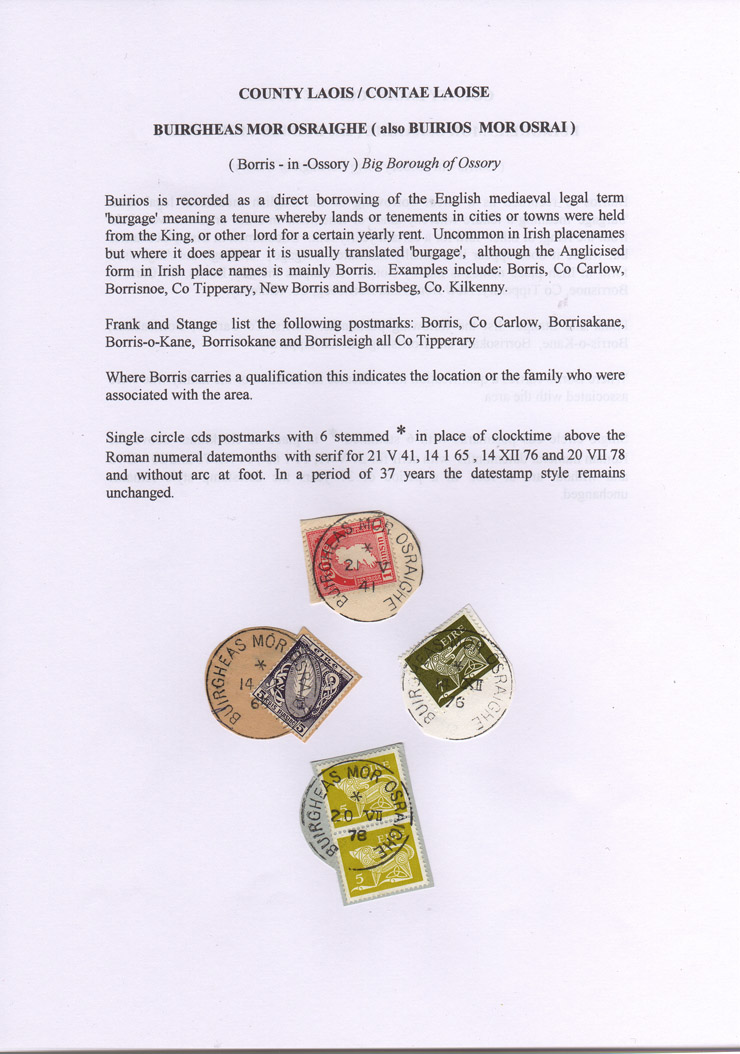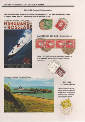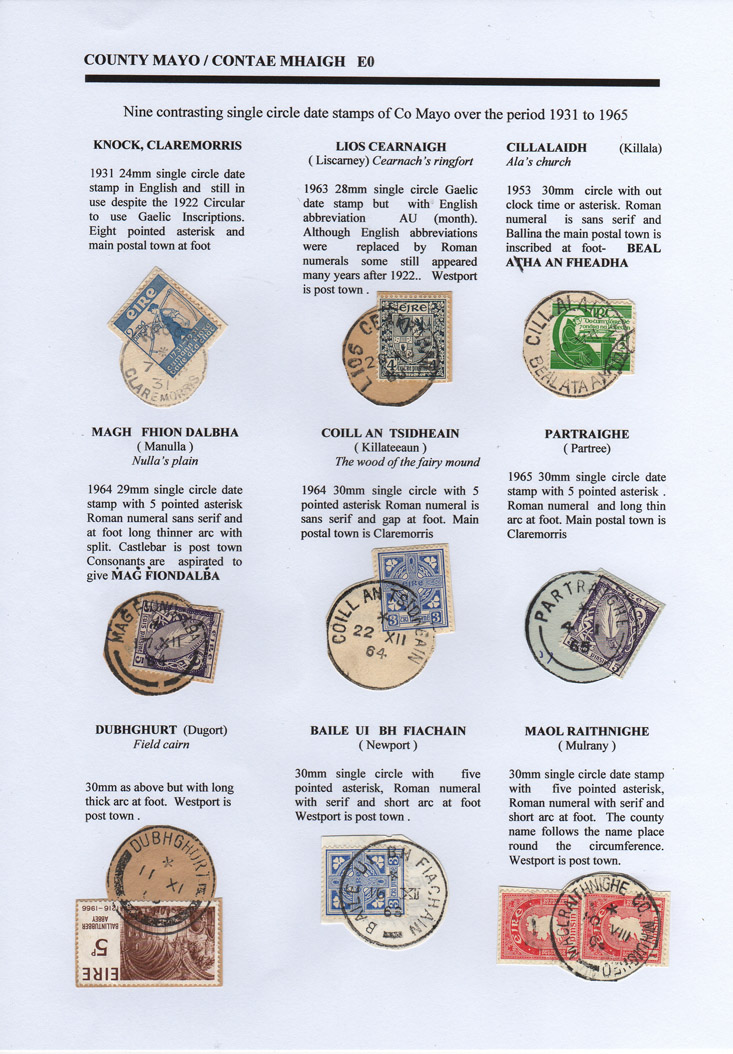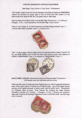 Gaelic Postmarks, A display by NIPS member, Selwood Fitzpatrick to Lagan Valley Philatelic Society, February 2010.The March 1922 directive of the Provisional Government indicated that Gaelic as the legally recognised language of Ireland would be used heneforth for Irish Postmarks. Selwood's display shows various changes to the different town post marks in Gaelic and English as well as a selection of sub office and parent office marks.To see the full display click on the picture below for the relevant display. Once in that display, to see a larger image, click on the relevant page and a larger image will open on a new page. Some browsers allow this to be enlarged further by clicking on the page. Once viewed, click the back arrow on your browser to return to this page.