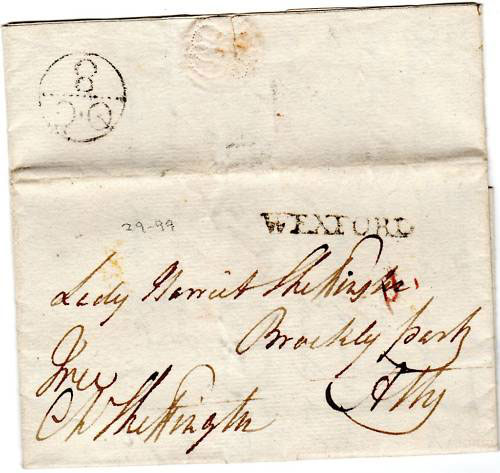 Wexford Post Office is recorded as being open circa 1638-59. Postmarks include UN, MI (72&74), PP, MC, 448 Diamond from c1844, Spoon Cancel (EI), SRDS (EI), DRDS (EI), Skeleton (I), Machine Cancel (I), SLogan Cancel (E), Parcel (EI), Printed paper (WSE), Paid (EI), Paquebot (I)