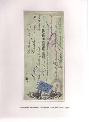 1916 Cheque to Bing, Harris & Co.Ltd Honey Seals and Stamps 1943 Share Transfer Certificate