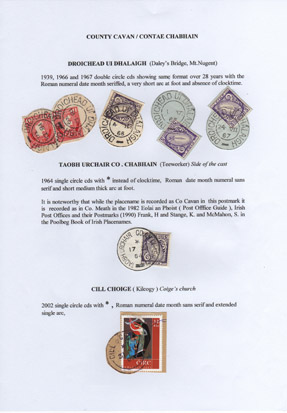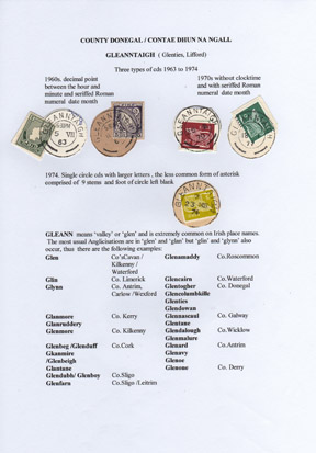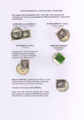 Gaelic Postmarks, A display by NIPS member, Selwood Fitzpatrick to Lagan Valley Philatelic Society, February 2010.The March 1922 directive of the Provisional Government indicated that Gaelic as the legally recognised language of Ireland would be used heneforth for Irish Postmarks. Selwood's display shows various changes to the different town post marks in Gaelic and English as well as a selection of sub office and parent office marks.To see the full display click on the picture below for the relevant display. Once in that display, to see a larger image, click on the relevant page and a larger image will open on a new page. Some browsers allow this to be enlarged further by clicking on the page. Once viewed, click the back arrow on your browser to return to this page.